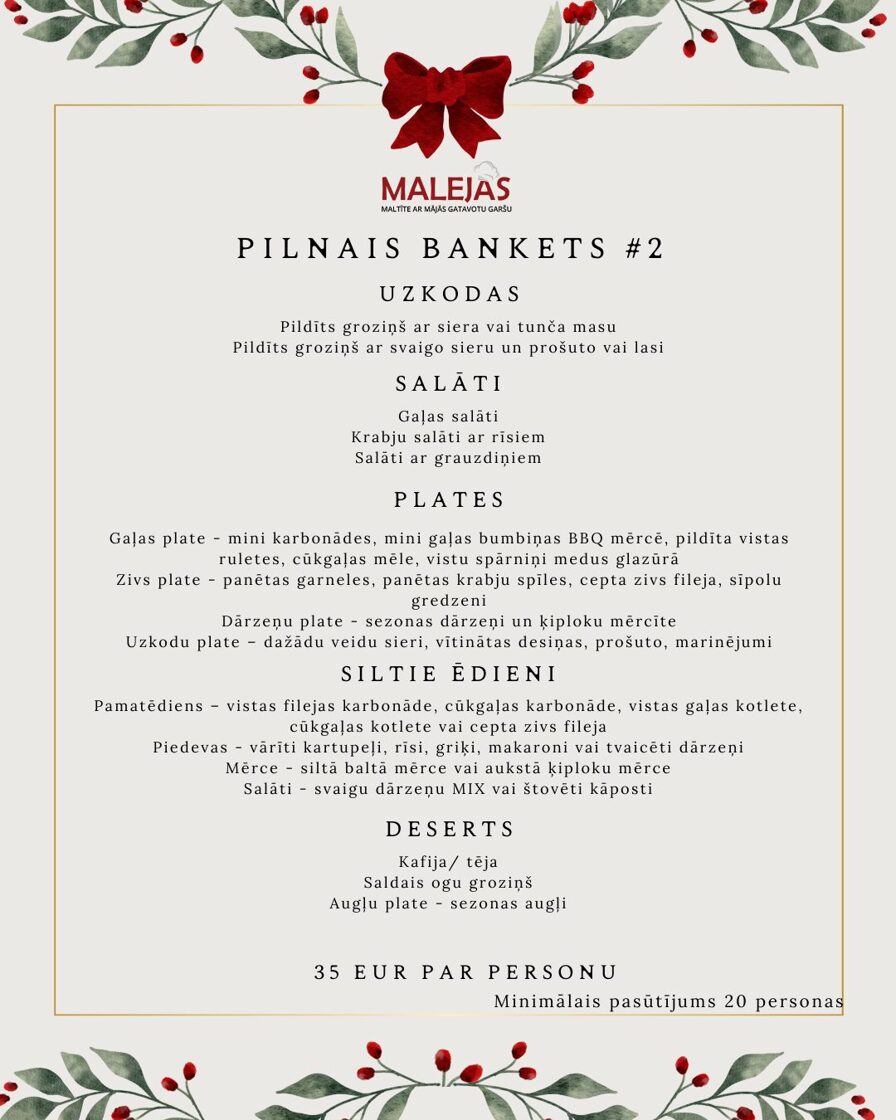 Aicinām iepazīties ar mūsu īpaši veidotajām banketu ēdienkartēm, kas radītas, lai ikvienu pasākumu padarītu gardu, svinīgu un neaizmirstamu. Piedāvājam vairākus ēdienkaršu variantus – sākot no vieglām uzkodām līdz bagātīgi klātiem svētku galdiem.